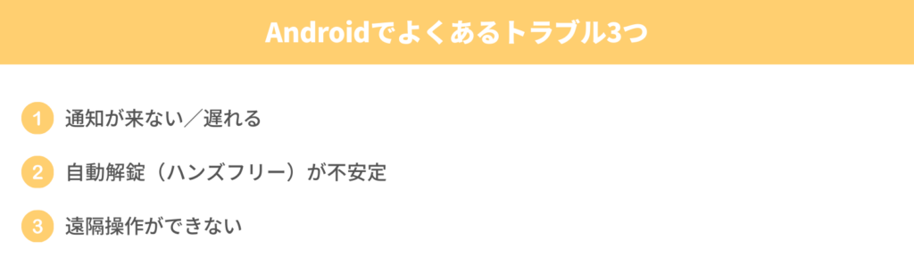 Androidでよくある不安(通知・自動解錠・遠隔操作)は、機種よりも省電力設定やバックグラウンド制限が原因なことが多いです。