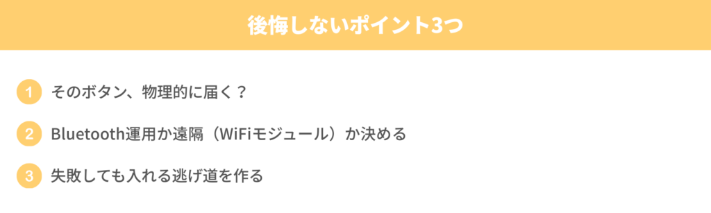 SESAME Botは“押せないと詰む”ことがあるので、次の『後悔しない3つのポイント』でしっかり対策しましょう。